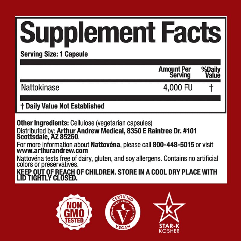Directions: Take Nattovéna with eight ounces of water on an empty stomach or as directed by your healthcare provider. Higher daily doses may be divided into two or three servings per day.